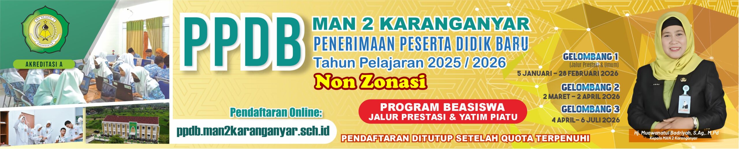 Pendidikan di MAN 2 Karanganyar setiap tahun mengalami kenaikan dari segi kualitas maupun kuantitas, prestasi akademik dan non akademik