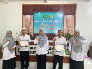 Madukara Berkabar-Semangat digitalisasi pendidikan semakin nyata di lingkungan MAN 2 Karanganyar. Pada Selasa (21/04/2026), Kepala MAN 2 Karanganyar, Muawanatul Badriyah, S.Ag., M.Pd., secara resmi memberikan penghargaan kepada dua staf Kurikulum atas prestasi mereka mengembangkan aplikasi penilaian terbaru.