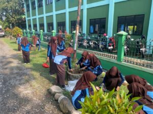 • Pembersihan Drainase: Mengantisipasi genangan air di musim penghujan guna menjaga sanitasi lingkungan sekolah.